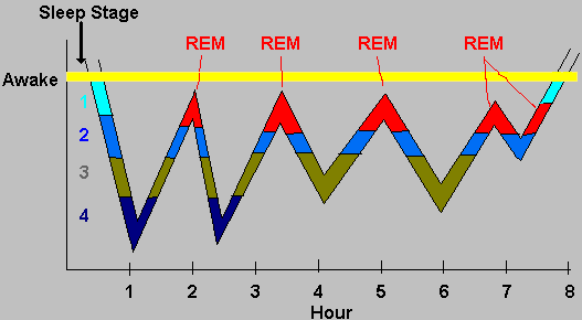 The brain cycles through these rate and amplitude changes throughout the course of the night, only hitting REM sleep in the later cycles.