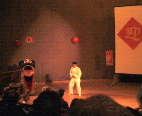 usually it is done for example while breathing in and raising the hands, then breathe out as u stomp down on the heels, hands down also.