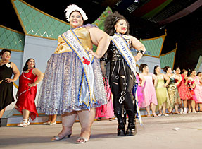 NAKHON PATHOM, Thailand (Reuters) -- In an era of chiselled supermodels and bizarre weight-loss diets, a Thai beauty contest celebrated women with a bit of flesh when heavy-weight contestants battled for the Miss Jumbo Queen crown.