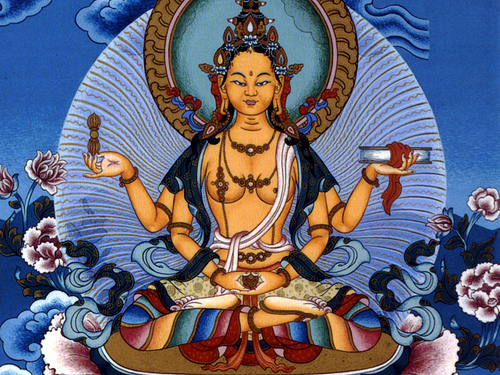 Normally, these aggregate factors are associated with confusion (zag-bcas) - usually translated as their being "contaminated." With anuttarayoga tantra practice, we remove that confusion about reality and thus totally transform our aggregates. Instead of each moment of experience comprising five factors associated with confusion, each moment eventually becomes a composite of five types of deep awareness that are dissociated from confusion (zag-med ye-shes), and which are the underlying natures of the five aggregates. These are the deep awareness that is like a mirror, of the equality of things, of individuality, of how to accomplish purposes, and of the sphere of reality (Skt. dharmadhatu). Each of the five is represented by a Buddha-figure (yi-dam): Vairochana, and so on, called in the West "the five dhyani-Buddhas."