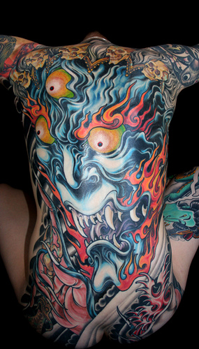 The surrounding blazing fire symbolizes his activity that consumes neurotic states.