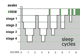 The brain cycles through these rate and amplitude changes throughout the course of the night, only hitting REM sleep in the later cycles.