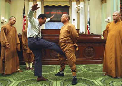 March 21st, in coordination with the "Shaolin Temple San Francisco", whatever that is, brings Yongxin and his troupe of performing monks, for a one evening demonstration in SF. It's going to be a short trip for these guys; Yongxin allegedly is visiting some politico in San Francisco for a few reasons, one of which has to do with the creation of an official Shaolin Temple training center. More details as they come.