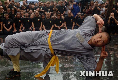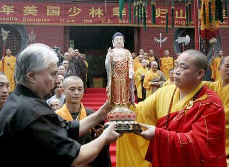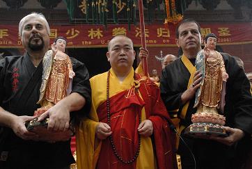 After the ceremoney, all american demonstated the shaolin Double Dao, snake boxing, self-defence boxing , and fighting , some china wushu, and as rewards, yongxin also aked 18 shaolin fighting monks to pass on the skills of shaolin wushu.